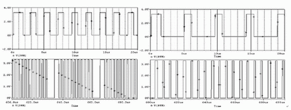 從模擬結果可以看出,此PFM控製電路的實現方式在輕負載下,可以有效降低轉換器的損耗,提高運行效率。