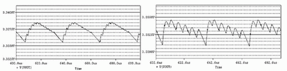 PFM控製電路在模擬時,輸出電壓VOUT的額定值取典型輸出值3.3V,模擬結果如圖3所示。
