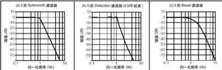 Bessel濾波器通帶中有平坦幅度響應(見圖2c)。過了通帶後,轉換頻帶的衰減率比Butterworth或者Chebyshev濾波器的低,且阻帶中沒有振蕩。這種濾波器的階躍響應是上述所有濾波器中最好的,過衝和振蕩都極小(見圖3c)。