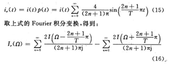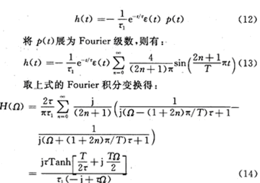 特別注意,求和式是一周期為2T的周期方波p(t)與單位階躍信號ε(t)的乘積,對上式取Fourier積分變換即得到開關電容電路係統頻譜函數(用j表示虛數單位,下同):