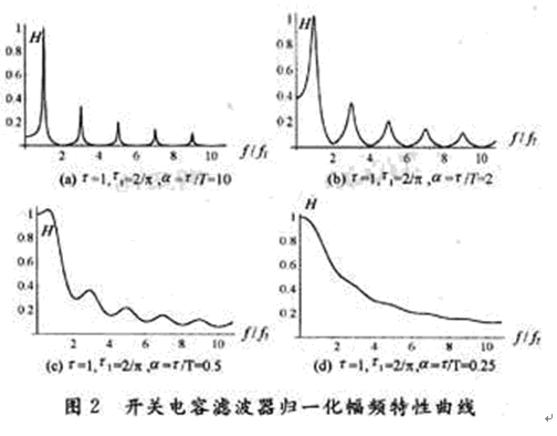 (1)α=τ/T較大時電路是梳齒幅度按奇數倒數規律衰減的梳狀濾波器,通帶中心頻率(梳齒)為:
