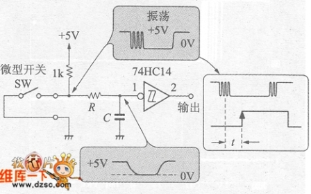 數字電路是不希望振蕩的。使用觸發電路原理上也是防止振蕩影響的電路,簡草的防止對策就是組合RC低通濾波器和施密特觸發電路。