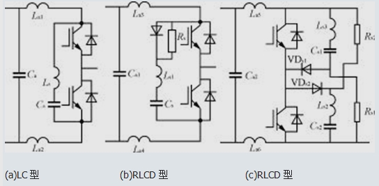 圖7是三種放電阻止型吸收電路。放電阻止型緩衝電路中吸收電容Cs的放電電壓為電源電壓,每次關斷前,Cs僅將上次關斷電壓的過衝部分能量回饋到電源,減小了吸收電路的功耗。因電容電壓在IGBT關斷時從電源電壓開始上升,它的過電壓吸收能力不如RCD型充放電型。