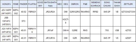 以繼電器為例,廈門宏發的繼電器產品能對富士通、歐姆龍、鬆下電工、鬆川等國際公司的產品進行替代。具體可見下圖,如廈門宏發的JZX-140FF係列產品可以替代富士通FBR621、OMRON的G2R/G2RG、P&B的RKX/RKS係列產品等。