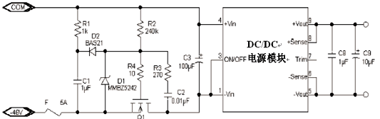 也可用熱敏電阻法來限製衝擊電流,但由於DC/DC電源的輸入電壓較低,輸入電流較大,在熱敏電阻上的功耗也較大,一般不用此方法。