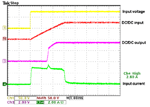 圖4. 通信係統在標稱輸入電壓和最大輸出負載時的衝擊電流限值(DC/DC電源)