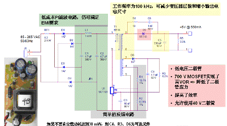 除了可以省去光耦器,由於采用無篏位設計還可以再省去四個元件。除了這些節省外圍元件帶來的成本節約,由於采用了優化的PI MOSFET技術,適合100kHz工作,還可以減小變壓器的尺寸和成本、降低輸出電容容量,這些都能進一步降低成本。而高於70%的效率,使其可以使用低成本的AWG28電纜。芯片本身的價格也不貴,100,000片訂貨量的單價為0.42美元,今年三月即可實現量產。