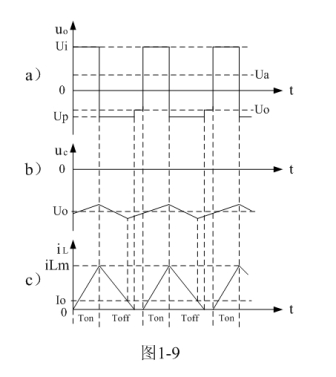 反轉式串聯開關電源輸出電壓一般為負脈衝的幅值。當開關電源工作於臨界連續電流狀態時,流過儲能電感的初始電流i(0)等於0(參看圖1-8-a)),即:(1-26)式中流過儲能電感電流的最小值iLX等於0。因此,由(1-21)和(1-26)式,可求得反轉式串聯開關電源輸出電壓Uo為: