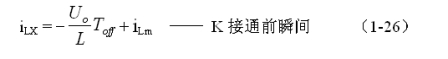 式中i(Ton+)為控製開關K從Ton轉換到Toff的瞬間之前流過電感的電流,i(Ton+)也可以寫為i(Toff-),即:控製開關K關斷或接通瞬間,之前和之後流過電感L的電流相等。實際上(1-23)式中的i(Ton+)就是(1-21)式中的iLm,即:
