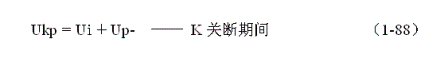 式中Ukp為控製開關關斷時刻,控製開關兩端的電壓;Up-為變壓器初級線圈產生反電動勢電壓的峰值。根據(1-68)式和圖1-16-b可知,Up-一般都大於輸入電壓Ui,因此Ukp大於兩倍Ui。