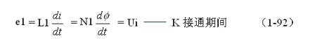 圖1-17中,當輸入電壓Ui加jia於yu開kai關guan電dian源yuan變bian壓ya器qi初chu級ji線xian圈quan的de兩liang端duan,且qie變bian壓ya器qi的de所suo有you次ci級ji線xian圈quan均jun開kai路lu時shi,流liu過guo變bian壓ya器qi的de電dian流liu隻zhi有you勵li磁ci電dian流liu,變bian壓ya器qi鐵tie心xin中zhong的de磁ci通tong量liang全quan部bu都dou是shi由you勵li磁ci電dian流liu產chan生sheng的de。當dang控kong製zhi開kai關guan接jie通tong以yi後hou,勵li磁ci電dian流liu就jiu會hui隨sui時shi間jian增zeng加jia而er增zeng加jia,變bian壓ya器qi鐵tie心xin中zhong的de磁ci通tong量liang也ye隨sui時shi間jian增zeng加jia而er增zeng加jia。根gen據ju電dian磁ci感gan應ying定ding理li: