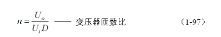 (1-83)式表明,當變壓器初級線圈N1繞組的匝數與次級線圈N3繞組的匝數相等時,如果控製開關的占空比D小於0.5,電流i3是不連續的;如果占空比D等於0.5,電流i3為臨界連續;如果占空比D大於0.5,電流i3為連續電流。