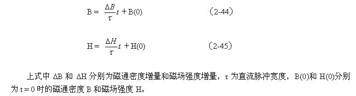 在圖2-19-b中,隨著時間線性增長部分是變壓器初級線圈勵磁電流產生的磁場;Hb是為了補償渦流產生的去磁場,而由變壓器初級線圈另外提供電流所產生的磁場。