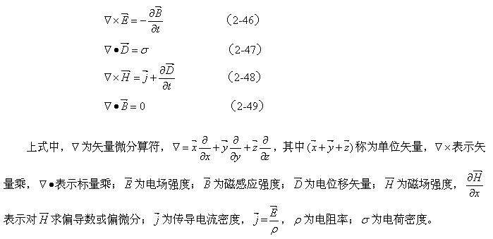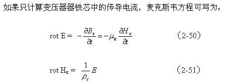 為鐵芯的電阻率,負號表示渦流產生的磁場方向與勵磁電流產生的磁場方向相反。rot E和rot Hx分別表示電場和磁場的旋度,即渦旋電場和渦旋磁場的強度。Hx、Hy、Hz分別磁場強度H的三個分量;Bx、By、Bz分別磁感應強度B的三個分量;Ex、Ey、Ez分別電場強度H的三個分量。