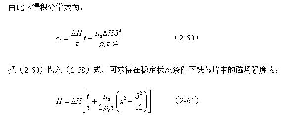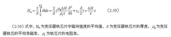 由於在變壓器鐵芯片內,截麵磁場強度的平均值Ha,在任一時間內都必須等於電磁感應所要求的值,即滿足(2-45)式的要求,因此對應圖2-18對(2-58)式求平均值得: