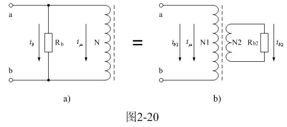 圖2-20-a中,Rb為渦流損耗等效電阻,N為變壓器初級線圈。由此可以看處,由於受渦流損耗的影響,變壓器鐵芯被磁化時,相當於一個渦流損耗等效電阻Rb與變壓器初級線圈N並聯。