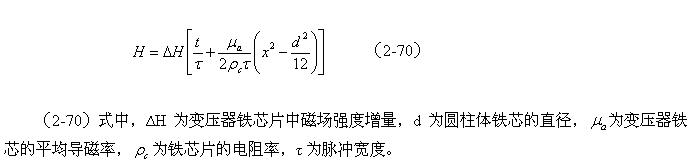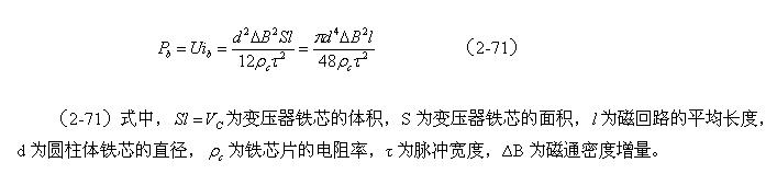 或者,圓柱體變壓器鐵芯的渦流損耗,與磁感強度增量以及鐵芯直徑的四次方成正比,與電阻率及脈衝寬度的平方成反比。
