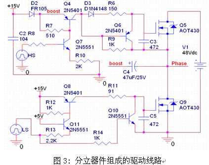B.分立器件驅動電路用的器件較多,可靠性相對沒有半橋芯片的驅動電路高。但前提條件是半橋驅動芯片的驅動電路要設計合理。