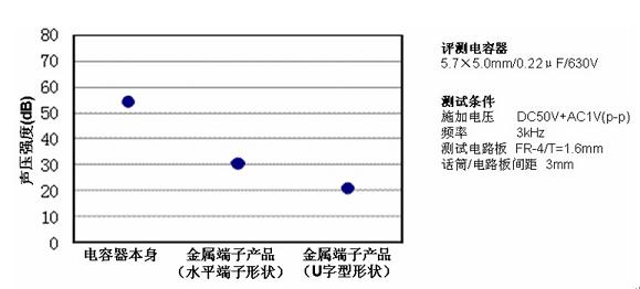 針zhen對dui單dan個ge電dian容rong器qi的de嘯xiao叫jiao,金jin屬shu端duan子zi電dian容rong器qi能neng夠gou大da幅fu度du的de降jiang低di嘯xiao叫jiao強qiang度du。另ling外wai,若ruo與yu使shi用yong低di介jie電dian率lv材cai料liao的de陶tao瓷ci電dian容rong結jie合he,能neng更geng進jin一yi步bu降jiang低di嘯xiao叫jiao強qiang度du。