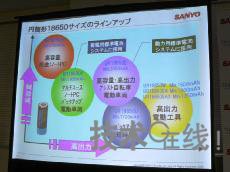 圖4:三洋電機移動能源公司業務開發統括部統括部長雨堤徹 圖5:通用圓筒形單元(18650)的產品陣容。根據用途區分使用