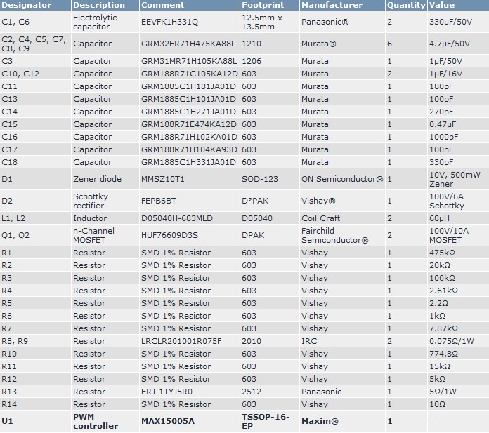 表1列出了參考設計的材料清單(BOM)。