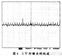 此開關電源5 V時輸出的紋波如圖4所示,峰值為15 mV,紋波不大於0.3%。該電源作為30 kW開關磁阻電機控製器電源,在勝利油田已得到實際應用,工作可靠。