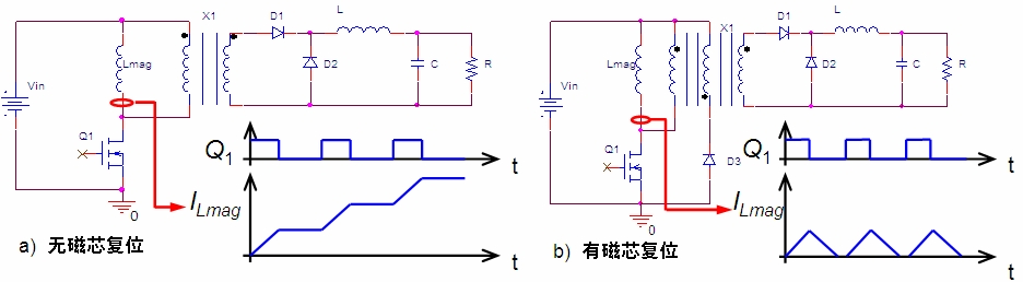 - 比較三次繞組、RCD鉗位及雙開關正激等常見的磁芯複位技術;