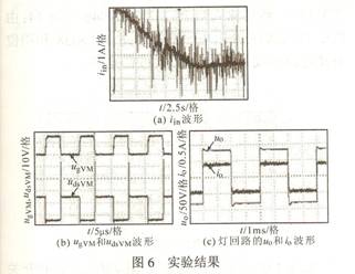在前述原理分析和實現方案討論的基礎上進行了實驗論證。實驗樣機是額定功率為35W汽車頭燈電子鎮流器。升壓電路采用反激式電路,選用UC3843作為PWM控製芯片。主要電路參數有:反激式電路的MOSFET開關管選用的IRF540;二極管選用MUR860,變壓器的初級電感Lp=7.8µH,輸出電容選擇耐壓為630V的1µF的CBB電容。圖6b示出反激式變換器穩態下開關管的驅動電壓UgVM和開關管漏源極兩端的電壓UdsVM實驗波形。可見,UdsVM有一個很大的尖峰,是漏感的能量所致。圖6c示出穩態時兩端的電壓uo及其流過燈的電流io實際工作波形。由圖可見,燈兩端的輸出功率將近達35W,這與理論設計符合得很好。