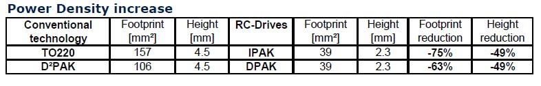 從功率密度來說如果選用這種小封裝的IPARK產品去取代TO220封裝的話,麵積可以減少75%,高度可以減少49%。而用這種DPARK封裝產品的話,如果去取代D2PARK這種產品,它的麵積可以減少63%,高度同樣可以減少到49%。