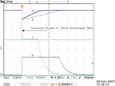 用yong恒heng流liu源yuan對dui電dian池chi充chong電dian時shi電dian壓ya將jiang不bu斷duan變bian化hua,以yi一yi定ding的de正zheng斜xie率lv上shang升sheng。這zhe是shi由you於yu放fang電dian和he其qi它ta電dian池chi內nei部bu化hua學xue變bian化hua過guo程cheng中zhong,電dian池chi正zheng極ji周zhou圍wei累lei積ji的de極ji化hua離li子zi逐zhu漸jian減jian少shao。因yin此ci,充chong電dian器qi的de工gong作zuo點dian取qu決jue於yu電dian池chi連lian接jie時shi間jian的de長chang短duan,以yi及ji電dian池chi的de工gong作zuo曆li史shi。用yong大da多duo數shu電dian子zi實shi驗yan室shi能neng夠gou找zhao到dao的de通tong用yong器qi件jian構gou建jian負fu載zai,以yi模mo擬ni這zhe一yi複fu雜za負fu載zai的de模mo型xing很hen困kun難nan。