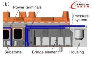 SkiiP技ji術shu中zhong有you一yi個ge方fang案an解jie決jue了le基ji板ban和he焊han接jie連lian接jie方fang麵mian的de問wen題ti,即ji將jiang基ji板ban和he與yu襯chen底di相xiang連lian的de大da麵mian積ji易yi疲pi勞lao焊han接jie連lian接jie全quan部bu去qu除chu,轉zhuan而er采cai用yong受shou專zhuan利li保bao護hu的de壓ya接jie係xi統tong。在zai壓ya接jie係xi統tong中zhong,襯chen底di通tong過guo機ji械xie壓ya力li被bei壓ya在zai散san熱re器qi上shang。由you於yu陶tao瓷ci襯chen底di比bi較jiao靈ling活huo並bing且qie壓ya力li是shi通tong過guo幾ji個ge點dian上shang的de機ji械xie“手指”施加的,可保證陶瓷襯底和散熱片之間的接觸非常緊密。因此,散熱塗層的厚度可以減少僅為(20-30)µm。相比之下,帶基板模塊的散熱塗層的厚度為100µm。