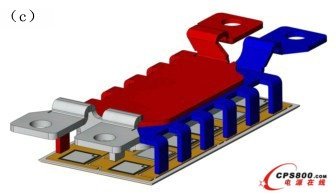 圖5不同壓接係統的對比:(a)MiniSKiiP壓力接觸;(b)SKiiP橋元件;(c)帶壓接軌的SKiM