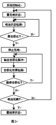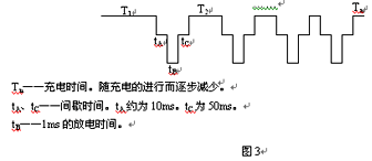 整個係統的控製過程為:蓄電池組開始充電一段時間後,檢測電池電壓,當達到電池出氣點電壓(約2.4V/單體)時,停止充電,然後進行大電流(約2C)放電去極化,時間為1ms,充放電曲線如圖3suoshi。fangdianhou,zaijiancedianchizhuangtai,jinxingqujihuaxiaoguojiance,dadaoqujihuaxiaoguozehuizhuanchongdian,fouze,zaicijinxingqujihuafangdian,zhizhidadaoqujihuayaoqiudexiaoguocaihuizhuanchongdian。ruguolianxufangdiann次(n=3),電池電壓變化很小,則充電完成並結束充電狀態。