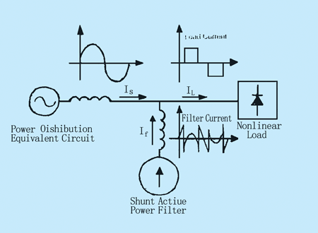 APF是一種新型可動態抑製諧波的PE裝置。其濾波方式為:先從補償對象中檢測出諧波電流,再利用可控的功率半導體器件(補償裝置)向電網注入與諧波源諧波分量(I或U)幅值相等、相位相反的諧波分量(I或U),使電源的總諧波為零,達到實時補償諧波的目的。經經驗證明,APF是抑製諧波和補償無功的理想和靈活的可行方案,下麵予以重點介紹。