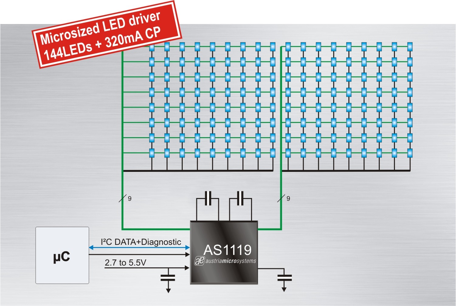 奧地利微電子推出業內效率最高、尺寸最小的全新144通道點陣LED驅動器