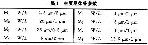 所有NMOS襯底接地,所有PMOS襯底接電源,所有開關管寬長比均為0.5μm/O.5μm。輸入信號為振幅50μA,頻率為200kHz的正弦信號,時鍾頻率為5MHz,Vref=2.4V,VDD=5V。表1中給出了主要晶體管仿真參數。