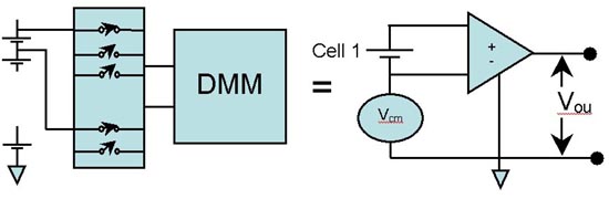 圖3:燃料電池堆中各個電池單元的電壓可能隻有1V左右,但共模電壓(因為堆中較低位置的電池單元)卻可能將單個單元的測量抬升到較高的電壓水平