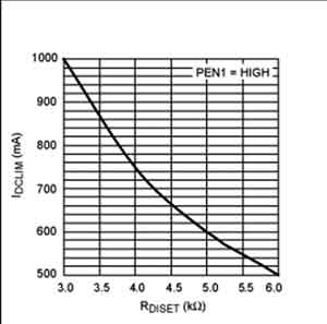 充電速度由下麵幾個因素決定:電池電壓、USB/DC輸入電流限製、充電電流設置電阻(RCISET)、ISYS以及管心溫度。MAX8671X為了防止輸入過載和過熱,可自動將充電電流降至某個低於所設置的充電速率的數值。