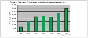 此外,預計2011年西班牙、法國和捷克的PV市場不會擴張,這些國家正在推行嚴格的措施來限製其國內的太陽能投資熱潮。