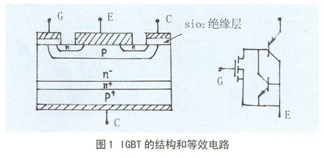 IGBT器件的剖麵和等效電路見圖1。