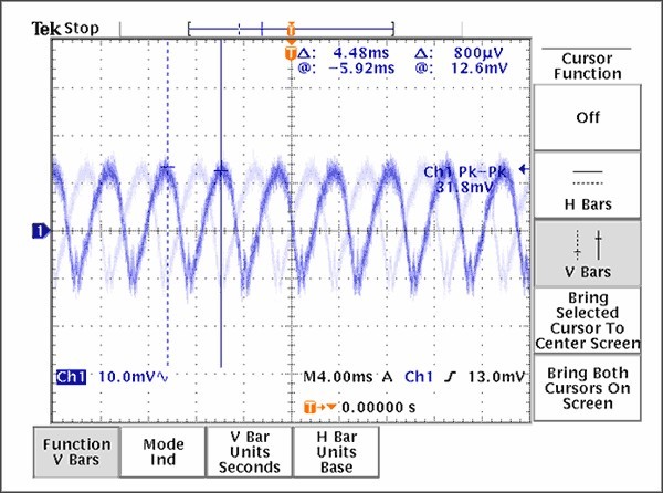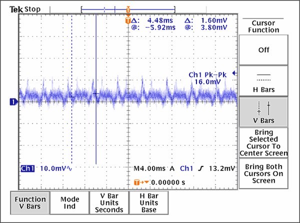 [page]經驗證明,抑製PLL雜散的有效途徑是合理的接地、電源布局和去耦技術,本文討論的布線原則是減小PLLzasanfenliangdelianghaoshejikaiduan。kaolvdaodianhebengzhongcunzaijiaodadedianliubianhua,caiyongxingxingtuopufeichangbiyao。ruguomeiyouzugoudegeli,dianliumaichongchanshengdezaoshenghuiouhedaoVCO電源,對VCO頻率進行調製,通常稱為“VCO牽引”。通過電源線間的物理間隔和每個VCC引腳的去耦電容、合理放置接地過孔、引入一個串聯的鐵氧體元件(作為最後一個手段)等措施可以提高隔離度。上述措施並不需要全部用在每個設計中,適當采用每種方式都會有效降低雜散幅度。圖9提供了一個由於不合理的VCO電(dian)源(yuan)去(qu)耦(ou)方(fang)案(an)所(suo)產(chan)生(sheng)的(de)結(jie)果(guo),電(dian)源(yuan)紋(wen)波(bo)表(biao)明(ming)正(zheng)是(shi)電(dian)荷(he)泵(beng)的(de)開(kai)關(guan)效(xiao)應(ying)導(dao)致(zhi)電(dian)源(yuan)線(xian)上(shang)的(de)強(qiang)幹(gan)擾(rao)。值(zhi)得(de)慶(qing)幸(xing)的(de)是(shi),這(zhe)種(zhong)強(qiang)幹(gan)擾(rao)可(ke)以(yi)通(tong)過(guo)增(zeng)加(jia)旁(pang)路(lu)電(dian)容(rong)得(de)到(dao)有(you)效(xiao)抑(yi)製(zhi)。圖(tu)10顯示的是在電路改變後,在同一點的測量結果。