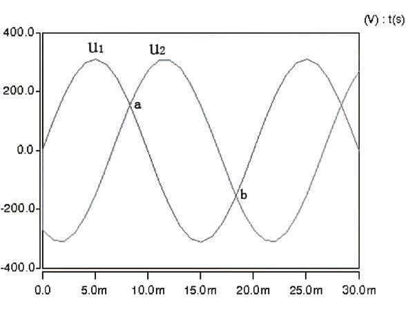 在一個周期內,u1和u2存在兩個交點,即a,b兩點。a點是u2>u1的起始點,b點是u1>u2的起始點,該設計對a點進行檢測,通過電路變換,在每一個周期的ashikechanshengxiangyingdemaichongxinhao,bingjianggaixinhaosongzhidanpianjidewaibuzhongduan,danpianjiduizhongduanjinxingchulihepanduan,congerjiancedaoziranhuanxiangdian,tongshitongguoruanjianduisanxiangdianyuandepinlv、相序以及是否缺相作出判斷。