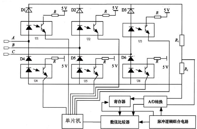 圖2 傳統的數字型自然換相點檢測電路原理圖