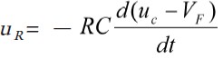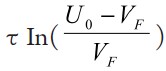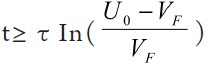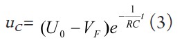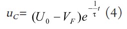 根據初始條件u C ( 0 + ) -V F =uC (0-)-VF =u0 -VF,並令式(2)的通解為uC -VF = Aem ,得該一階齊次微分方程的解為: