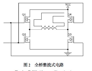 (2) 全橋整流式電路。圖2 所示為全橋整流式電路。該方案采用了4 個MOS 管,工作時對管同時導通,半周期內Q1、Q3 導通,Q2、Q4 截止,然後Q2、Q4 導通,Q1、Q3 截止。這樣的工作方式使每半周期都有2 個MOS 管來分壓,對MOS管的耐壓要求就降低了,適用於高壓場合,但由於使用了4個MOS 管,使得損耗功率增加,開關損耗同時增加。考慮到農業機械一般功率較大,采用該方案必然降低電能利用率,導致大量的能耗損失。