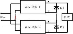 快恢複二極管D1、D2為串聯方式中的保護器件,要求D1、D2反fan向xiang耐nai壓ya大da於yu兩liang倍bei的de電dian源yuan額e定ding輸shu出chu電dian壓ya,電dian流liu大da於yu兩liang倍bei的de電dian源yuan額e定ding輸shu出chu電dian流liu,正zheng向xiang導dao通tong壓ya降jiang應ying盡jin量liang小xiao。由you於yu是shi采cai用yong兩liang個ge電dian源yuan模mo塊kuai串chuan聯lian構gou成cheng電dian源yuan係xi統tong,在zai一yi個ge有you限xian製zhi的de封feng裝zhuang內nei完wan成cheng設she計ji有you一yi定ding困kun難nan,有you的de模mo塊kuai串chuan聯lian方fang案an采cai用yong兩liang個ge封feng裝zhuang完wan成cheng設she計ji,即ji設she計ji兩liang個ge30V 的獨立電源,再進行外部串聯構成+60V電源係統。本設計通過合理配置空間,在電源上下盒蓋中各安裝一個DC-DC模塊,以金屬殼體作為散熱手段,采用緊湊的設計和安裝技術將整個電源係統封裝在一個較小的空間內,使整個電源體積、重量大大減小,截麵積僅為6×9英寸2,實現了小體積大功率的一體化電源係統設計。