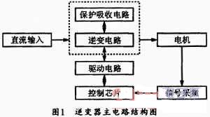 圖1為典型的逆變器結構原理圖。它由三部分組成:逆變電路、驅動保護電路、控製與信號采集電路。
