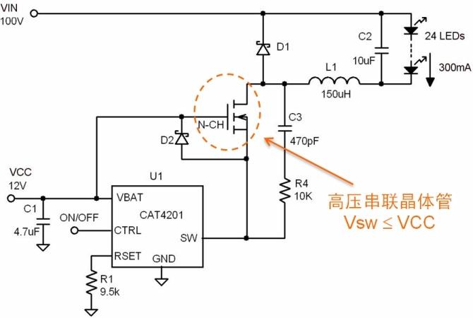 圖3:CAT4201高壓LED驅動器配置。