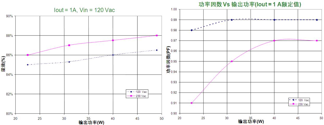 這90 W恒壓恒流演示板接受90至265 Vac的擴展通用輸入電壓(更換元件條件下可支持305 Vac),提供0.7 A至1.5 A的恒定電流輸出範圍(可通過微幅調節電阻來選擇)及30 V至55 V的恒定輸出電壓範圍(可通過電阻分壓器來選擇),最大輸出功率90 W,支持50至1,000 Hz調光控製,並包含可連接至可選調光卡的6引腳接口,用於模擬電流調節/雙亮度等級數字調光等智能調光應用。此外,這演示板還提供短路保護、開路保護、過溫保護、過流保護及過壓保護等豐富保護特性。測試顯示,這演示板在50 W輸出功率、1,000 mA輸出電壓/48 V正向壓降條件的能效高於87%(詳見表1),在50%至100%負載條件下功率因數高於0.9,同時符合IEC61000-3-2 C類設備諧波含量標準。