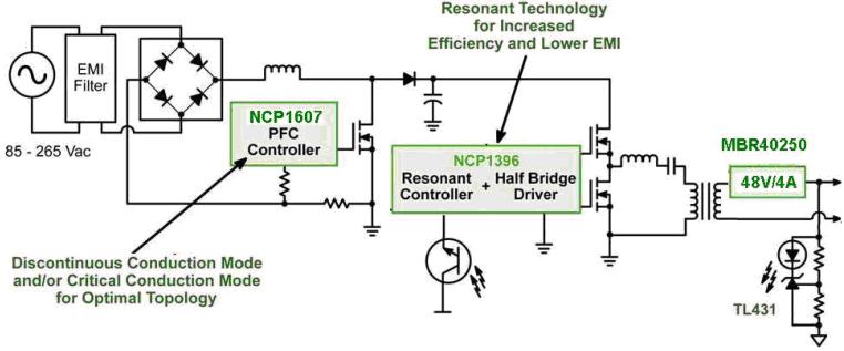 NCL30001是一種整體式/單段式的LED驅動方案,這種方案集成了PFC和隔離型DC-DC轉換電路,並提供恒定電流來直接驅動LED。這種方案相當於將AC-DC轉換與LED驅動兩部分電路整合在一起,均位於照明燈具內,省下了LED光條中集成的線性或DC-DC轉換器。這種整體式方案的電源轉換段更少,減少元器件使用數量(如光學元件、LED、電子元件及印製電路板等)、降低係統成本,並支持更高的LED電源總體能效。當然,這種方案的功率密度更高,可能並不適合所有區域照明應用,其光學圖案可能更適合較低功率的LED,典型應用包括LED街燈、外牆燈、洗牆燈及電冰箱箱體照明等。